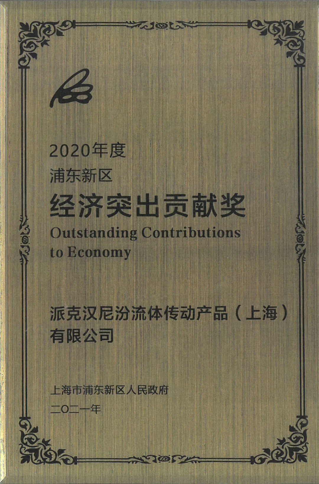派克漢尼汾榮獲2020年度浦東新區(qū)經(jīng)濟(jì)突出貢獻(xiàn)獎