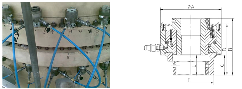 • 緊湊、可靠的拉伸器,液壓拉伸器采用的密封圈都經(jīng)機(jī)械加工,密封可靠性強(qiáng),長(zhǎng)期使用也不會(huì)導(dǎo)致機(jī)械失效;