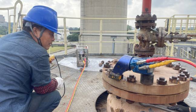 內(nèi)六角高強(qiáng)螺栓的預(yù)緊與普通六角螺栓的預(yù)緊原理是一樣的,只是設(shè)計(jì)有些微不同。內(nèi)六角高強(qiáng)螺栓有相應(yīng)的內(nèi)六角液壓扳手工具來進(jìn)行拆卸和預(yù)緊。其和普通液壓扳手的區(qū)別并不大,只是驅(qū)動軸不同。普通的液壓扳手驅(qū)動軸設(shè)計(jì)為四方軸,適配不同規(guī)格的高強(qiáng)套筒套在螺母上進(jìn)行作業(yè)。內(nèi)六角液壓扳手的驅(qū)動軸外端直接為六方軸,直接將驅(qū)動軸插入內(nèi)六方螺母進(jìn)行作業(yè),不需要再加套筒,不同規(guī)格需要配置多個規(guī)格內(nèi)六方驅(qū)動軸。