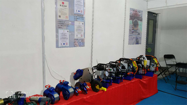BOLTING博霆工作人員向來訪人士講解液壓扭力工具使用